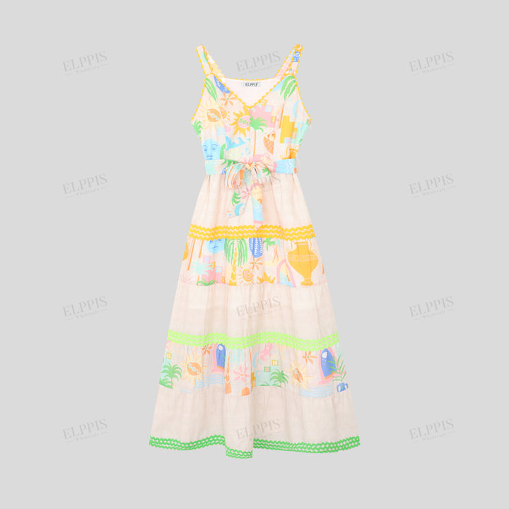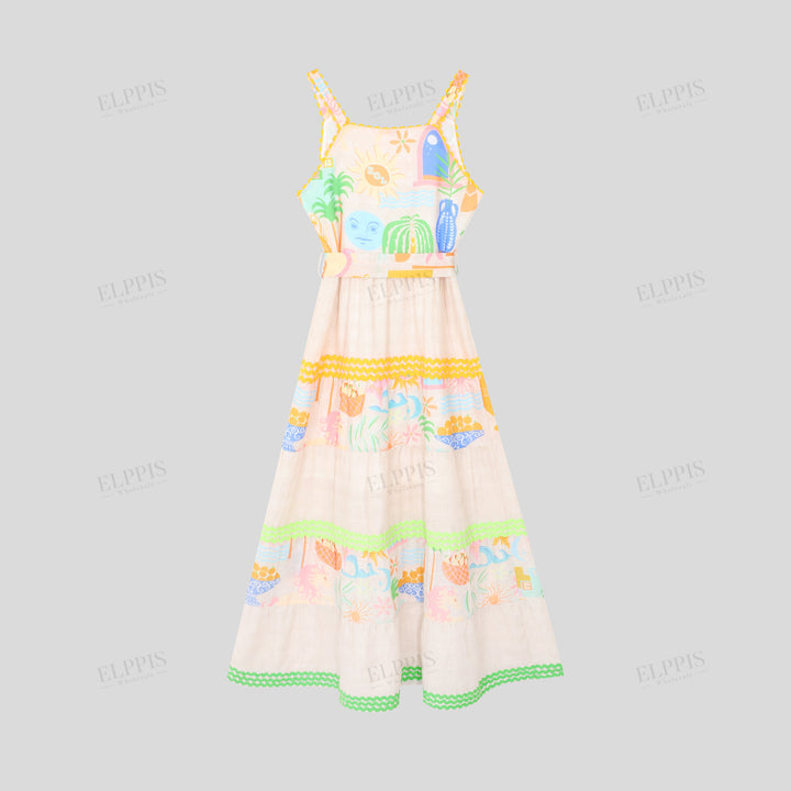 Vacation Sun Beach Woven Strap Patchwork Dress