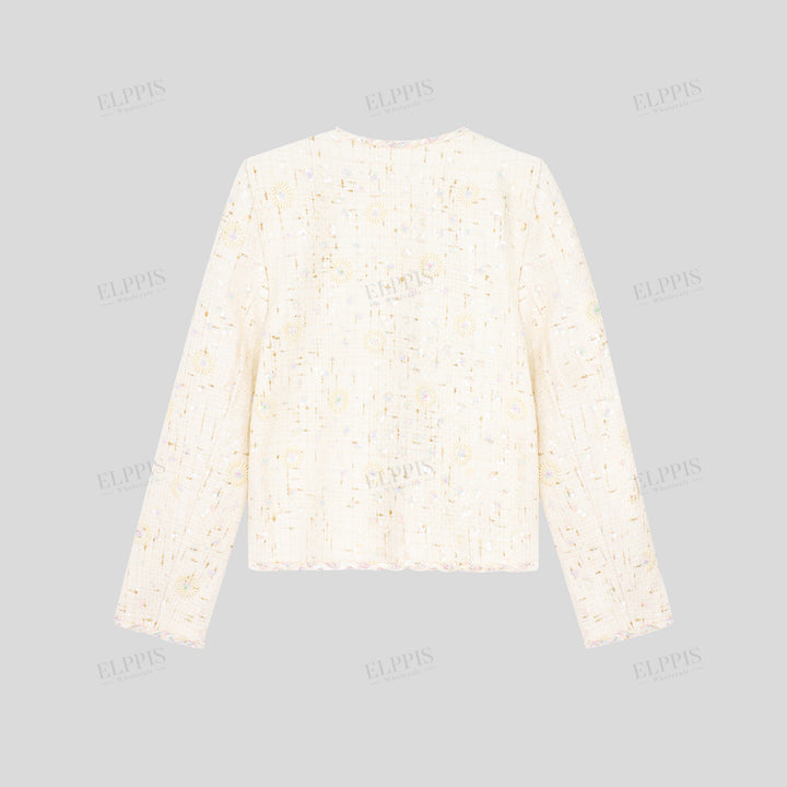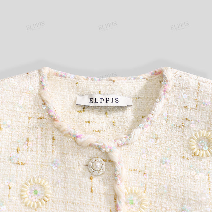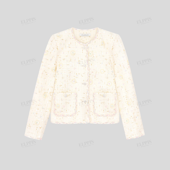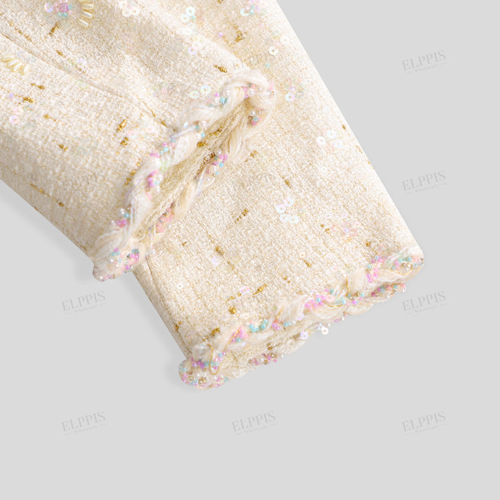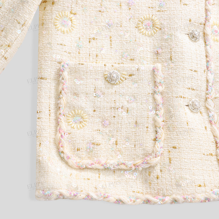 Heavy Embroidery Beaded Boucle Pearl-Detail French Tweed-Style Jacket