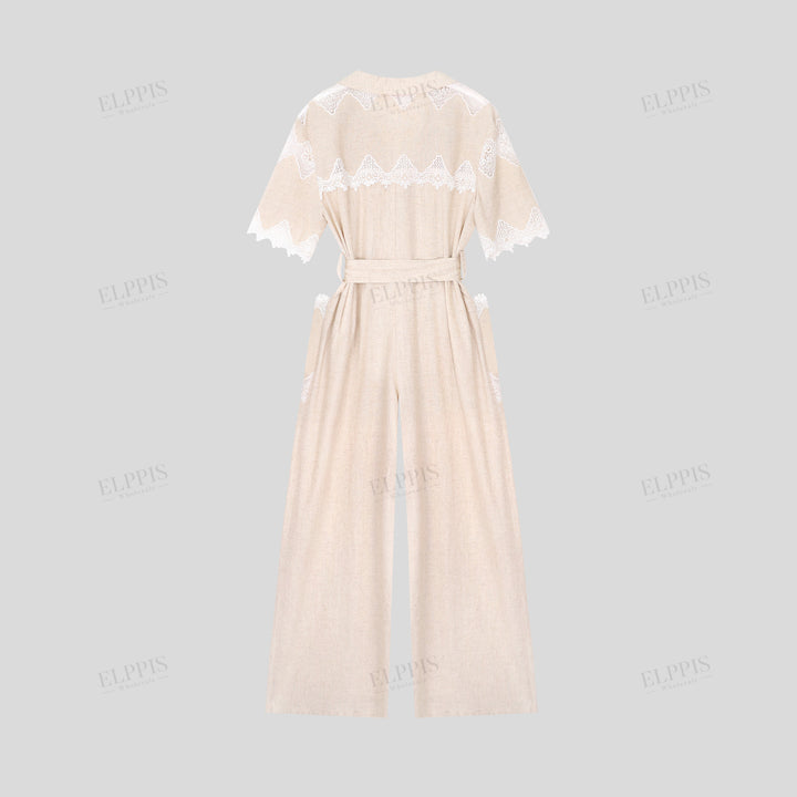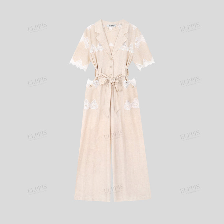 Vacation Hollow-Out Embroidered Long Jumpsuit