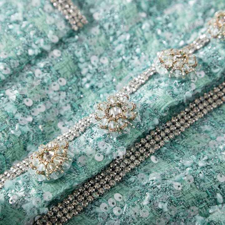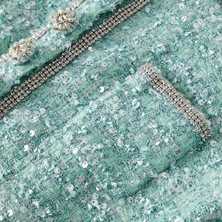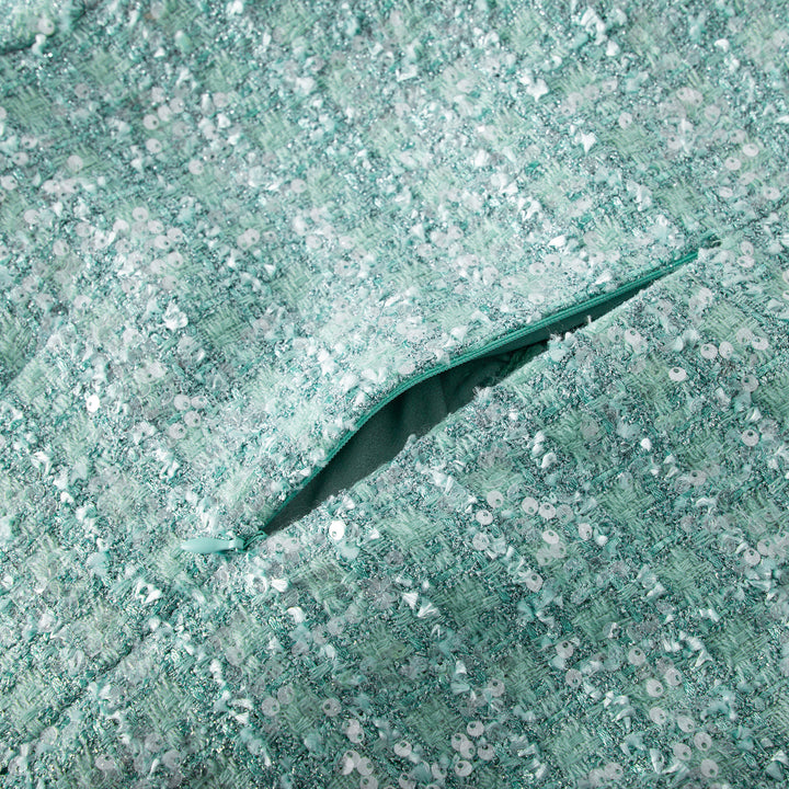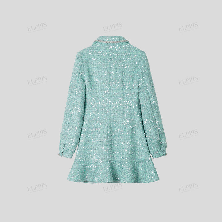 Collared Decorative Button Single-Breasted Long Sleeve Slim Fit Tweed-Style Dress